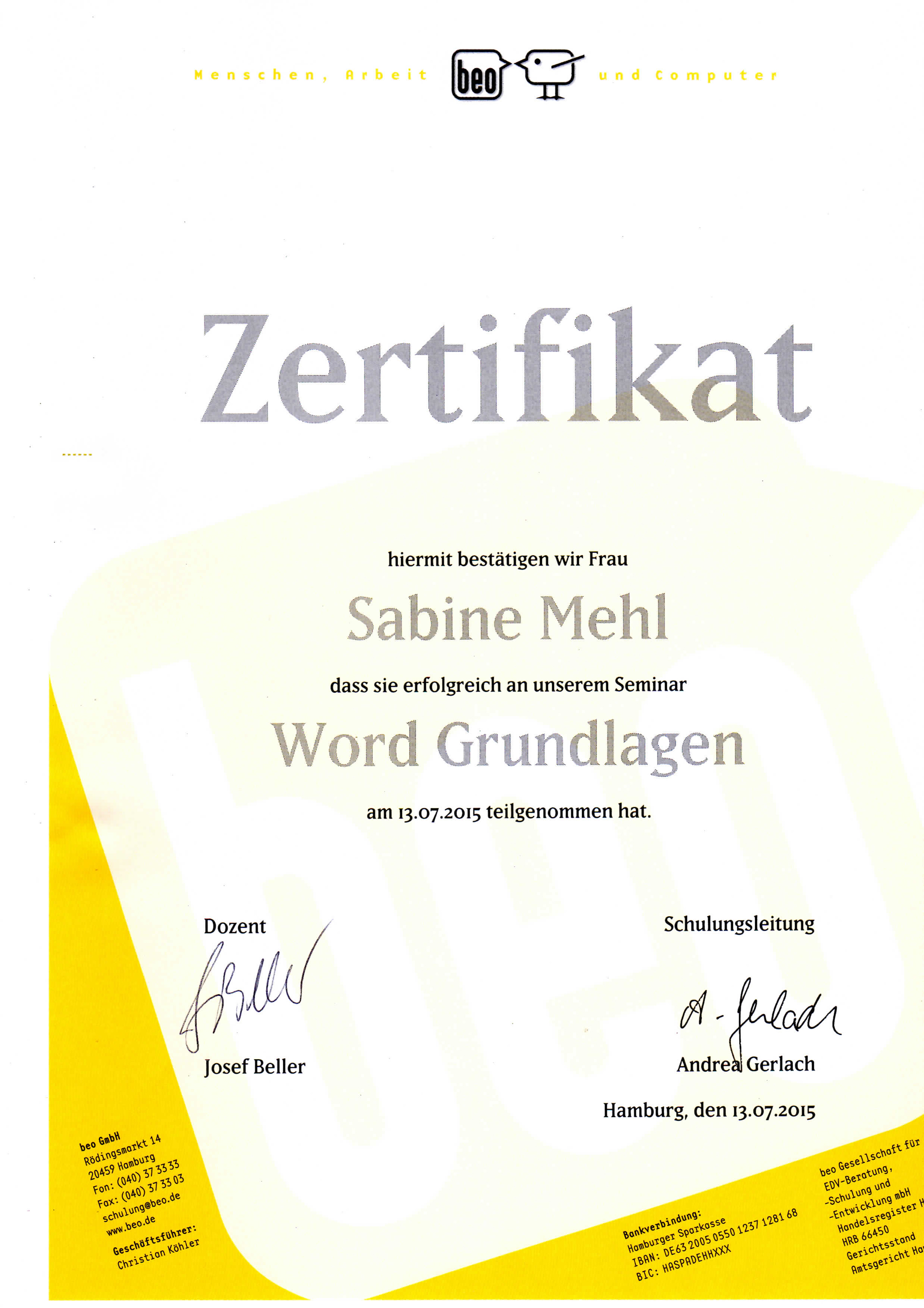 Erworbene Zertifikate